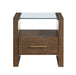 Bring casual elegance to your living room with the Garland Table, a stylish blend of modern design and rustic charm. Its clean lines and saw rasp distressing in a warm finish create a beautiful side table. The clear glass top offers a lovely display area, while the one drawer provides convenient storage for essentials. With plastic glides for easy movement, this end table makes a perfect side companion for a chair or sofa. Functional and chic, it’s a great addition to any home.