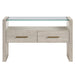 Bring casual elegance to your living room with the Garland Table, a stylish blend of modern design and rustic charm. Its clean lines and saw rasp distressing in a cool washed parchment finish create a contemporary focal point for the living room. The clear glass top offers a lovely display area, while two drawers provide convenient storage for essentials. With hidden casters, it’s easy to move the table for cleaning or when you need extra space to relax. This coffee table is both functional and chic, perfect for any home.