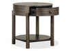 Create an interior with modern organic style by incorporating tables from the Hadleigh collection. Naturally curvaceous shapes and a smooth Coffee Bean finish over oak veneers distinguish these designs and establish the group's casually elegant vibe. Hadleigh is thoughtfully scaled to fit in both large and small living spaces while providing storage and display functionality. Its handsome character includes details such as matching wood hardware, shaped bottom shelves, and a nesting Cocktail Table that can be used as one or two pieces. Multiple table shapes and sizes ensure this minimalist-inspired collection will integrate seamlessly with any seating area while adding signature style.
