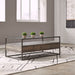 - Drawer Cocktail Features Center Drawer & Open Shelf