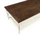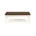 Add farmhouse charm to your living area with the Joanna Cocktail Table. Gracefully turned legs combine with a two-tone ivory and mocha finish for an inviting look that works well with in farmhouse or coastal upholstery. Casters add real function to the table while a bottom shelf adds storage and/or display area while also adding structural stability to the unit. Matching Sofa Bar and dining sets are available from this comprehensive farmhouse collection.