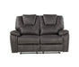 The Katrine Reclining Set showcases the best in manual motion upholstery with this stylish ensemble. Sofa, Loveseat and Chair are covered in a luxurious faux-leather that features baseball stitching, padded armrests and a raised, padded headrest that ensure a comfortable view and seat even when fully reclined. All seats are reclined with a quick pull of the outside lever.