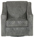 The Lamar swivel accent chair is great as a stand alone accent or in conjunction with the Lamar sofa, loveseat, chair and cocktail ottoman. The seating is constructed with 50+ individually pocketed coils encased in foam, topped with a layer of cool gel infused memory foam and wrapped in a layer of synthetic fiber. This creates a comfortable and supportive seat that will last much longer than traditional foam only seating. The 360 degree swivel base allows you to easily rotate the seat to always be a part of the conversation.