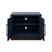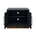 The Nora Modular Two Door Base Cabinet boasts clean lines and crisp, refreshing modern styling. Beautifully crafted from Poplar Solids, Knotty Alder Solids and Okume Veneers, this base cabinet rests atop a platform base and is available in multiple Two-Tone Finishes with Black Hardware. Two framed panel doors conceal interior storage with cable management openings on the back panel to keep wires organized and out of sight. Mix and match a combination of base cabinets and bookshelves with the Nora Fireplace TV Stand to build a customized Entertainment Wall. Each piece in the Nora Modular Collection is fully assembled on arrival, so get set to unbox and start curating the configuration that is right for your home.