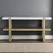 Elevate your space with the Marble Top Table, a stunning accent piece for any room. Crafted from veneers and hardwood solids, it features a striking white marble top paired with weathered solid wood legs, adding sophistication to your decor. With a built-in shelf for display or storage, and a bold, substantial frame, this table offers both functionality and elegance, making it a standout addition to your home.