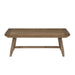 Center your room with the Modern Ranch styling of the Riverdale Coffee Table. Saw rasp distressing relaxes the design of this table that is long on details but casual in finish. A substantial knife and double-edged top rests on canted, chamfered and tapered legs in a simple sophistication you will love. Just add End Tables and Upholsery for the perfect, casual living setting.
