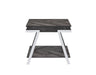 Contemporary style in a shadow grey finish, Roma offers aesthetic and practicality in one package. The End Table features Silvershield® tops that resists mars and scratches in a mixed media package with canted chrome leg that gives the table an aggressive modern profile. Bottom shelf adds valuable space for display or storage and the table pairs seamlessly with other tables in the Roma collection.