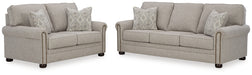 Inspired by the past but rooted firmly in the present, the Gaelon seating package complements your transitional seating area. Its versatile upholstery is delightfully detailed for a subtle herringbone effect. Designer touches like decorative nailhead trim and bun legs add traditional character. With this set's reliable style and comfort, all you need to do is sit back and relax.