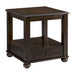 Accent your living space with the Wagner End Table’s elegant design. Made with quality solid wood and a warm, cherry veneer, this piece demonstrates the appeal of traditional style. Detailed elements like bun feet and decorative molding add touches of understated elegance, while a drawer with skillful English dovetail construction and ball bearing glides mark superior craftsmanship. The open shelf conveniently extends staging area, perfectly complementing the spacious tabletop. For an effortless addition of refinement to your living space, the Wagner End Table delivers in quality and style.