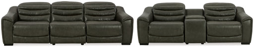 Signature Design by Ashley®This sleek, ultra-modern power reclining seating package has it all. With designer looks and head-to-toe comfort, it has the upscale look of leathe...