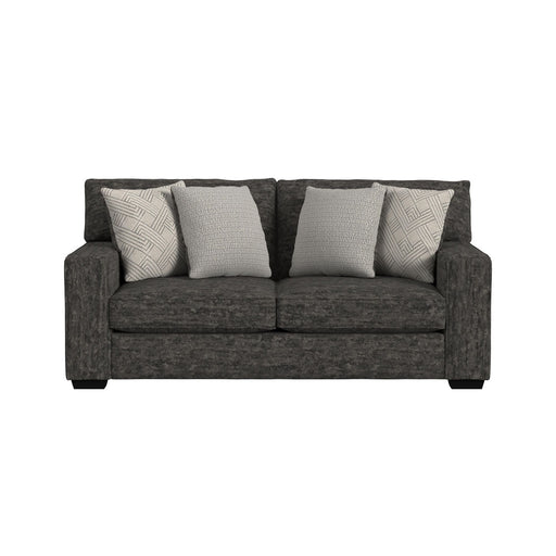 ATLAS loveseat has an extra-wide two-seat design covered in a premium polyester fabric and features a convenient Storage Console with Pewter finish...