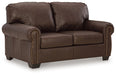 Sporting traditional elements including a roll arm frame with nailhead trim, this loveseat provides here-and-now relevance. Mix in this combination of comfort and affordable luxury for a look you’ll love for years to come.