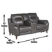 A high leg reclining Loveseat draped in luxurious top grain leather with faux-leather sides, the Trento features power footrest and power headrest for a comfortable yet stylish presentation. The center Console offers valuable storage and 2 hidden USB and 2 electrical outlets for recharging.