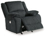 Built for luxury, this power rocker recliner lets you kick back in reliable style. The thick, softly textured chenille upholstery provides a comfy surface on which to lounge. With bustle back construction and thickly cushioned armrests, this piece gives you the dependable, powered support you need to unwind while the handy USB port provides the power to keep your devices going.