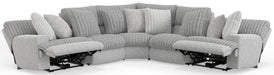 Abraxas is a Modular Reclining Sectional with a contemporary track arm design. A luxurious faux fur fabric and a variety of correlating toss pillows provide added style and seating comfort.