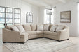 Details Includes 3 pieces: left-arm facing cuddler, armless loveseat and right-arm facing sofa with corner wedge, "Left-arm" and "right-arm" describe the position of the arm when you face the piece, Corner-blocked frame, Loose seat and attached back cushions, High-quality foam cushions wrapped in poly fiber, Accent pillows included, Pillows with soft polyfill, Polyester upholstery, Exposed feet with faux wood finish, Platform foundation system resists sagging 3x better than spring system after 20,000 testing cycles by providing more even support, Smooth platform foundation maintains tight, wrinkle-free look without dips or sags that can occur over time with sinuous spring foundations