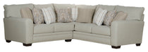 The contemporary farmhouse styling of the Middleton sectional brings comfort and style to any room. The seats are constructed of individually pocketed coils encased in foam and topped with a layer of cool gel infused memory foam for a long lasting, comfortable and supportive seat. Covered in a soft, durable 100% polyester fabric in a light gray color the Middleton is durable enough for use in a family room, basement or bonus room. The exceptional styling shows through with the included decorator accent pillows and nickel nail head accents along the base rail.