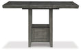 Cool and on-trend. This counter height extension table sports an antiqued gray color for a contemporary-yet-casual feel. The table features a storage base and removable leaf for extra seating room, making it a breeze to clear off clutter and expand your table space. Dining with friends and family has never been so stylish.