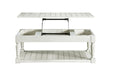 Cottage styling in a Lift-Top Cocktail Table set that lets you work or eat while seated on your Sofa. The Hemingway Collection features classic cottage design like turned legs, plank tops, and an alabaster finish. The plinth base offers a sturdy foundation to anchor the Lift-Top convenience of the Cocktail while offering additional storage or display options in the End and Sofa Table. Two storage pockets underneath the lift-top offer convenient storage for remotes or other items.