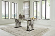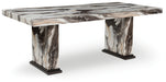 This dining table reflects your highly contemporary point of view. Its faux marble tabletop and base are a feast for the senses—white contrasts against the light and dark brown veining to create an elevated, authentic feel. With room to seat eight people in sleek style, this table is a delicious choice for an elegantly elevated dining area.