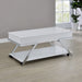 Midcentury modern meets glam in the Zena Lift-Top Cocktail Table. Full of function, this Cocktail Table allows you to work or dine in your living room with a simple pull of the top. The canted chrome legs are complemented with a white finish for a silhouette that is neutral but not boring. Four casters move the table with ease, out of the way of reclining furniture or just merely to clean around. Ample storage for living room essentials is available with the bottom shelf and under the lift-top. Great looking and full of function, Zena is a great centerpiece to any modern living room
