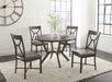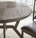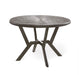 Mixed media and geometric designs combine in a soft gray palette for the Alamo Dining Collection. The Alamo Dining Table is constructed of paulownia veneers in a gray finish with a gray metal base with black hand brush accents. The table features a round parquet veneer top with a decorative metal rim accented by the unique geometric metal base. Add the matching Alamo dining chairs (purchase separately) to create interest for your dining space. Your purchase includes one dining table.