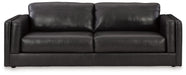 Keen on crisp, contemporary design? Adore the pleasure of leather? Look no further. This sofa satisfies on every level. Richly textured and decadently supple, the plush cushions are wrapped with expertly matched leather and faux leather upholstery in an on-trend onyx tone. Sleek double-padded arms and a low, clean-lined profile complete the spacious sofa's simply chic appeal.