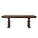 Armand, inspired by a 17 century French antique. Pulling in Tuscan elements for the dining the rectangular trestle table features heavy square turned bases. Square back, armless upholstered chairs feature linen upholstery with a nail head trim on the base of the chair. The buffet features 4 door panels with overlays and pilasters chamfered for a soft appeal. Cases feature overlays on the top drawers, framed drawer panels, block feet and chamfered posts. Media features drop down fronts so it can double as a small dresser with the landscape mirror for smaller spaces.