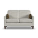 Add a touch of cosmopolitan allure to your living space with the Bond loveseat. Its sophisticated mid-century style delivers clean lines with a structured tight-back design and refined welt trim. Mailbox-style arms soften the silhouette, while lumbar accent pillows add style. Square tapered legs, available in three finishes, and the ability to upholster in your choice of fabrics ensures the perfect look.