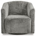 | Details | Charcoal gray faux fur polyester upholstery, Barrel back, Tight seat cushion, Metal swivel base, 360-degree swivel | |