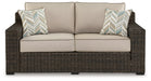 Who says the great outdoors isn’t made for luxury living? This loveseat with cushion offers all the high-end design, plush comfort and durability you could ask for, and then some. Its all-weather, rust-proof aluminum frame provides the easy-breezy wicker look you love without the high maintenance. Rest assured, the high-performing Nuvella® fabric covering the cushions and throw pillows is made to stand up to the elements.