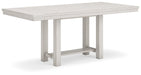 | Details | D642-32: Made with rubberwood solids, ash veneer and MDF substrates, Antiqued white finish with wood grain texture, Tabletop with planked effect, Two 12” extension leaves, Table extends by pulling both ends and dropping in leaf, Assembly required, D642-124: Made with wood, Antiqued white finish with wood grain texture, Foam cushion with polyester upholstery, Nailhead trim, X-back, Assembly required, | |
