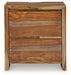 Discover something extraordinary with this clean-lined nightstand. The rich natural beauty of the wood, enhanced with a clear wood-tone finish, brings an organically stunning vibe to your bedroom. Strikingly simple drawers lend a hand with conquering clutter, while AC power and two USB ports provide fast bedside charging.