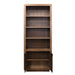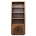 Bring Home the Eclipse Bookcase Pier for sophisticated reimagined vintage style. Beautifully crafted from Oak Solids and Veneers and Walnut Veneers, this Bookshelf Cabinet rests atop a crisp plinth base and features striking two-tone finish inlay arch panels on the doors that mirror the curves of the top corners. Showcase home decor and your book collection on open shelving above while concealing clutter behind two doors below. Pair with the matching TV Stand or Fireplace TV Stand to create a complete Entertainment Wall or display in multiples of two or three to form a chic bookshelf wall. Fully assembled upon arrival, this piece is ready to unbox and enjoy.