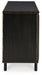 | Details | Made with wood, veneer and engineered wood, Distressed black finish, Metal base with black finish, 3 touch latch doors, 3 adjustable shelves, Assembly required | |