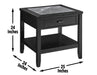 Transitional styling with a dark design, Garvine dresses up a living area with easy care style. Gray Sintered Stone tops add an elegant easy-care accent with enhanced performance features including moisture, scratch and heat resistance. Bottom shelves offer display or storage options while drawers in each piece offer valuable storage to a room. Cocktail and Two End Tables instantly update a living room - add the optional Sofa Table for a complete set.