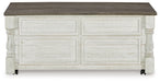 What a fresh interpretation of country classic style. Inspired by American farmhouse craftsmanship, but with an elevated sensibility, this lift-top coffee table blends distinctive details such as turned post accents and raised drawer fronts for a substantial look that feels right at home. Those who appreciate rustic character should take note of the table’s thick crown moulding, beautified with a vintage two-tone finish. It features four storage drawers, a small concealed storage tray under the lift-top, and robust legs that are ready to stand the test of time. And casters allow you to roll it wherever you like.
