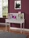 The Jesse Desk & Hutch Set features a crisp grey finish, delicate moldings, and crystal like knobs for a touch of sparkle. With two small drawers for storing supplies. This desk has plenty of shelving in various sizes. Your child is sure to stay organized and inspired. Complete your child's bedroom look with the Jenna Desk. Available in two colors.