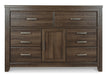| Details | Made of engineered wood (MDF/particleboard) and decorative laminate, Vintage aged brown rough sawn finish over replicated oak grain, Pewter-tone hardware, 6 drawers, 1 cabinet with 1 adjustable shelf, Mirror attaches to back of dresser, Safety is a top priority, clothing storage units are designed to meet the most current standard for stability, ASTM F 2057 (ASTM International), Drawers extend out to accommodate maximum access to drawer interior while maintaining safety, Assembly required | |