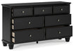 | Details | Made with hardwood solids, birch veneer and MDF substrate, Black painted finish, 7 smooth-gliding drawers with dovetail construction and ball-bearing side glides, Round metal drawer knobs with satin nickel-tone finish, Framed drawer fronts, Tapered feet | |