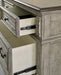 | Details | Includes dresser and mirror, Made with acacia wood, birch and acacia veneers, engineered wood and cast resin components, Two-tone finish; antiqued gray body with a rich, deep walnut brown finish on top, Dark bronze-tone bails and knobs, 7 smooth-gliding drawers with dovetail construction, Framed drawer fronts , Overlay decorative corbels, Mirror attaches to back of dresser, Assembly required | |