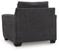 This chair personifies contemporary comfort. Its clean-lined frame and neutral color lend must-have versatility. Softly textured fabric makes it that much more inviting. A welcome combination of chic style and a cozy feel, this piece completes your living room with modern flair.