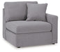 | Details | Includes 4 modular pieces: left-arm facing corner chaise, audio console with storage, armless chair and right-arm facing corner chair, "Left-arm" and "right-arm" describe the position of the arm when you face the piece, Modular pieces can float anywhere; sides are finished (with no connectors), Corner-blocked frame; loose reversible seat and back cushions; high-quality foam cushions wrapped in poly fiber, Throw pillows included; soft polyfill, Polyester upholstery, Next-Gen Nuvella™ is a family-friendly fabric that is soft, easy to clean, stain-resistant and durable; easy-to-remove zippered covers for machine washing, Clean fabric with mild soap and water, let air dry; for stubborn stains, use a solution of 4 oz. bleach to 28 oz. water, Non-skid legs, Console with plexiglass top; pull-out drawer for storage; built-in audio sound system with wireless connectivity; audio controls located on console; USB charging, Power cord included; UL Listed, Platform foundation system resists sagging 3x better than spring system after 20,000 testing cycles by providing more even support, Smooth platform foundation maintains tight, wrinkle-free look without dips or sags that can occur over time with sinuous spring foundations | |