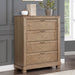 Rustic, yet refined, Montana mixes primitive design in a fashion-forward finish that delivesr the perfect chest for the bedroom. Great and useful storage offers fully extendible drawers and felt-lined top drawer to maximize storage nd keep delicate items snag-free. A warm, weathered sand stain over Chevron patterned drawer fronts combines with oil-rubbed brass hardware in a relaxed aesthetic for casual bedroom decors. Mix and match with other items in the Montana collection for just the right bedroom combination.