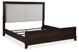 | Details | Includes upholstered panel headboard, panel rails and panel footboard with slats, Made with hardwood solids, engineered wood and MDF substrates, Grayish brown wood-tone finish, Floating inset upholstered panel in polyester Next-Gen Nuvella fabric surrounded by LED backlight, Next-Gen Nuvella™ is a performance fabric that is soft, easy to clean, stain-resistant and durable, Clean fabric with mild soap and water, let air dry; for stubborn stains, use a solution of 4 oz. bleach to 28 oz. water, Light switch is located on each side of headboard and includes dual USB charging port (USB-A and USB-C), Power cord included; UL Listed, Foundation/box spring required, sold separately, Mattress available, sold separately, Assembly required | |