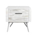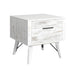 The Rogen Rustic End Table offers a perfect blend of vintage charm and modern design, making it a stylish and functional addition to any room. Its rustic white finish adds a touch of timeless appeal, beautifully complementing various decor styles. Crafted with a durable wood frame and acacia veneer, the table showcases a natural grain finish for added elegance. A spacious drawer with English dovetail construction and ball-bearing glides ensures smooth and reliable operation, while sleek metal handles provide a modern contrast. Angled legs and metal accents give this piece a sturdy, contemporary aesthetic with a touch of rustic flair.