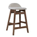 Sit in comfort with the Space Savers counter chair. Crafted of rubberwood solids, this piece features a satin walnut finish on the legs, linen upholstery, a low back which offers a unique design, nylon chair glides to protect your flooring, and is anchored by beautifully splayed legs. This piece is available in multiple colors, sure to find a place in any home.