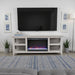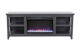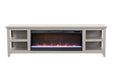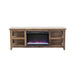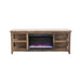 The Studio Fireplace TV Stand boasts simple, versatile, transitional style. Crafted from Poplar Solids and Okoume Veneers, this piece is available in three finishes. It will accommodate TVs and provide ample space for media components and more. The fireplace insert with clear crystals will keep you cozy while binge watching your favorite movie or TV series.