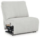 Details Includes 4 pieces: left-arm facing press back chaise, armless recliner, console with storage and right-arm facing recliner, "Left-arm" and "right-arm" describe the position of the arm when you face the piece, Chaise with press-back reclining motion, Recliners with pull tab reclining motion, Corner-blocked frame with metal reinforced seat, Attached cushions, High-quality foam cushions wrapped in poly fiber, Accent pillows included, Pillows with soft polyfill, Polyester upholstery, Console with 2 cup holders and hidden storage, Power cord included; UL Listed