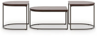 | Details | Includes coffee table and 2 end tables, Frame made with tubular metal; top made with wood veneer on MDF substrate, Frame with durable anodized bronze-tone powder coat finish, Top with medium-brown wood-tone finish, Nesting design, Assembly required | |